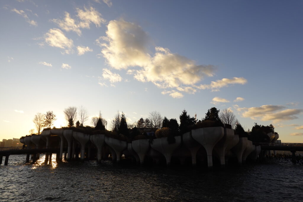 A nice and easy walk that gets me to Little Island, where I can contemplate the sun setting down behind New Jersey.
