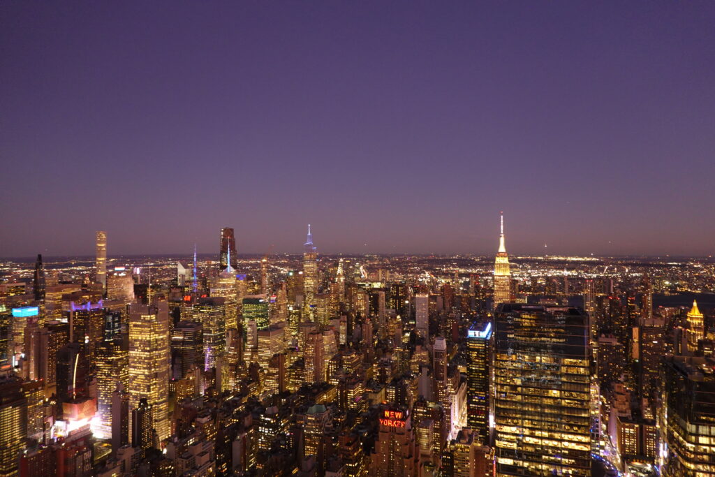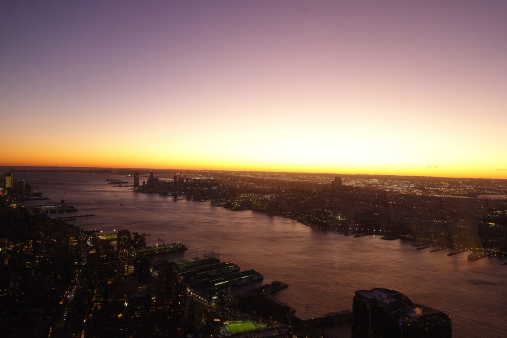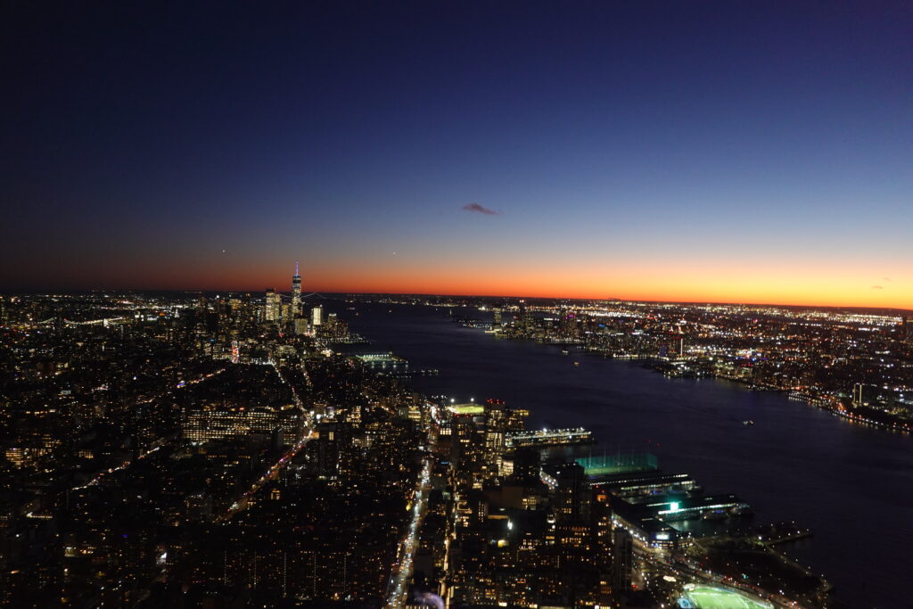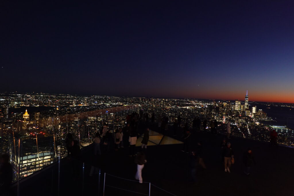 At 5pm, I am back at Hudson Yard to see the Edge. One of the most famous viewpoints in NYC. The same view point that most teenager vibe posters I used to have in my room. This happened to be a very good time I believe. I was able to caught the great sunset looking west but also capture new York city in the dark – or rather the lights. Everything is so tall, it is truly wild. Especially when you compare the heights to New Jersey.