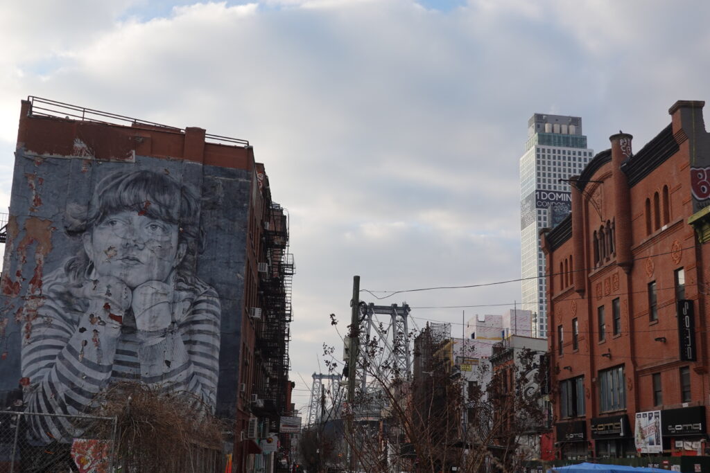 This morning, direction Brooklyn. First, we meander through the gigantic skyscrapers in the financial district. Because everything is so tall, after a few days it just becomes the norm. We jump on the subway and cross the bridge. We stop by a cute coffee place and spend the rest of the afternoon strolling around Williamsburg streets, popping inside cute shops, enjoying the cool street art.
