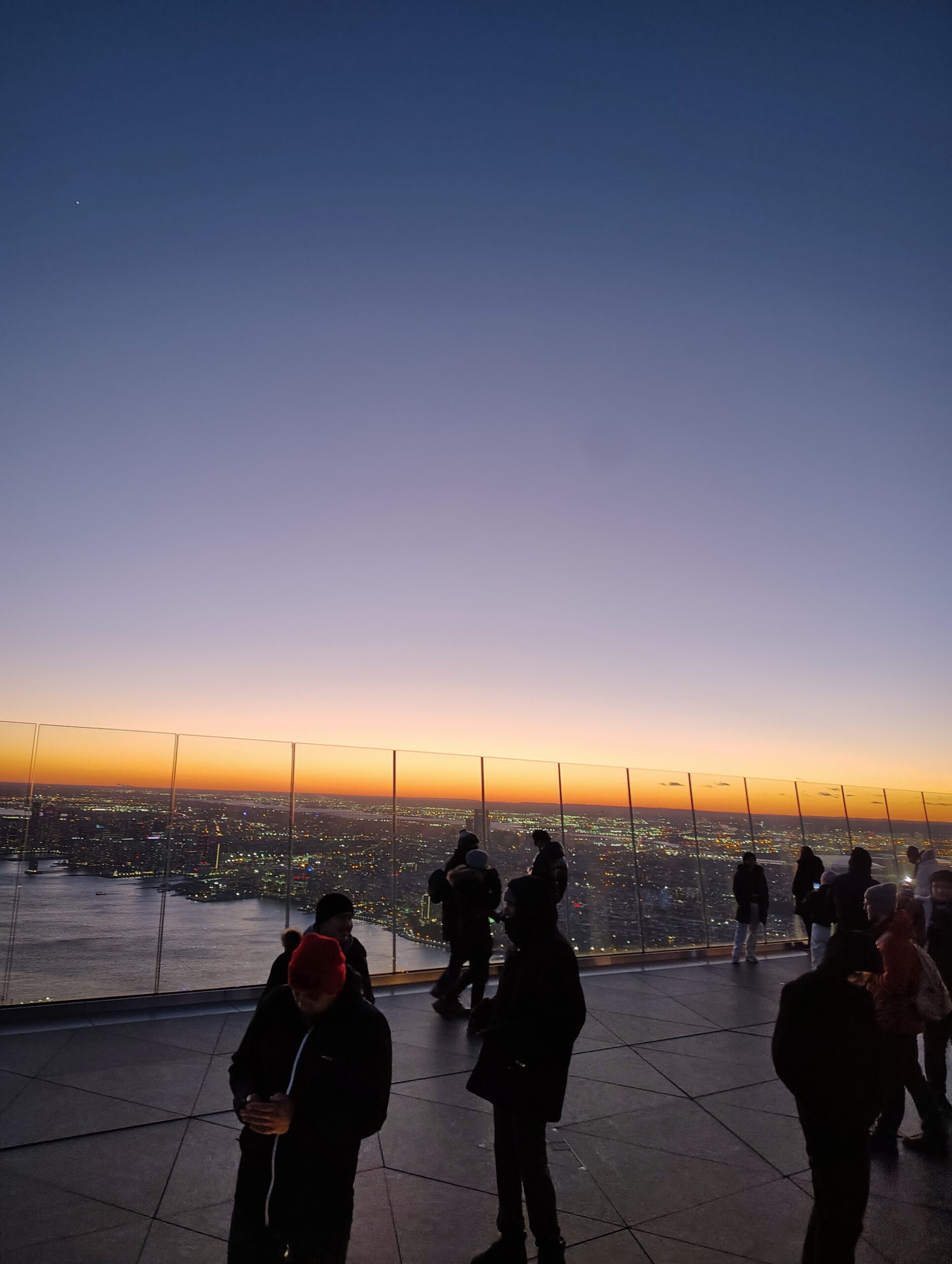 At 5pm, I am back at Hudson Yard to see the Edge. One of the most famous viewpoints in NYC. The same view point that most teenager vibe posters I used to have in my room. This happened to be a very good time I believe. I was able to caught the great sunset looking west but also capture new York city in the dark – or rather the lights. Everything is so tall, it is truly wild. Especially when you compare the heights to New Jersey.